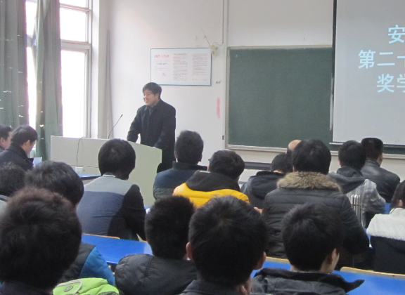 会上,弹药工程与爆炸技术系主任刘锋老师受学院委托,宣读了表彰决定,并鼓励获奖同学们要努力学习、热爱所学专业,在今后的学习、工作中更奋发有为,不辜负老师们的殷切期望。随后,弹药工程专业负责人郭子如教授发表了热情洋溢的讲话,他结合目前国内民爆专业发展形势,为在场的同学们提供了诸多关于个人发展的有益建议,希望同学们早日成为国家栋梁,为国家、社会、学校、学院做出自己的贡献。随后,获奖学生代表潘乐同学发言,表示将继续秉承“弹药精神”,刻苦学习、不断提高自身素质,不辜负校友、老师的热切期望。
